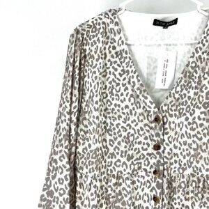 Women's Long Sleeve Button Down Mini Dress In Stone color.
