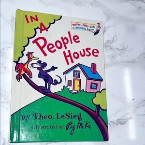 Colorful children's book 'In a People House' by Theo. LeSieg. Illustrated by Roy McKie. Features vibrant green and red cover.