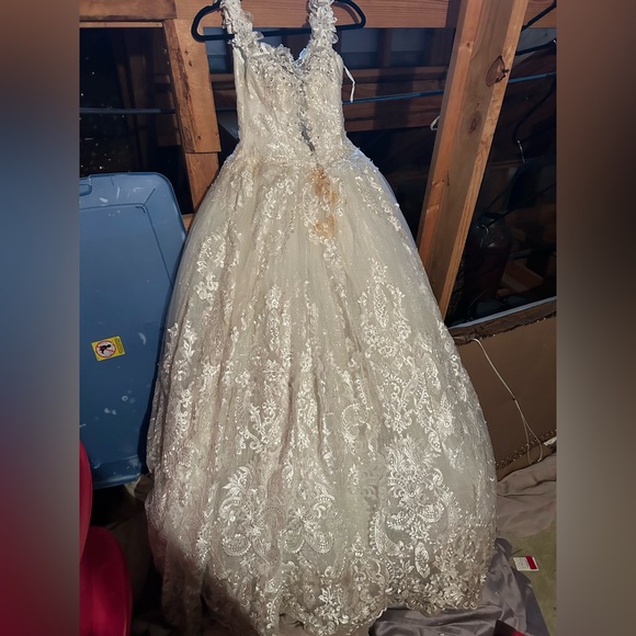In fair condition only has a stain just need’s to go to the dry cleaners then should’ve good as new
