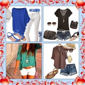 I'm in bad need of tops that are short sleeved to 3/4 sleeve that are not T-shirts but nice tops. Not any tank tops. If you see or have anything similar to the clothes in the picture please tag me. In shirts depending on brand is small-med, shorts/pants 26-27, shoes size 6. Thank you all.And I'm really interested in bundles!!!