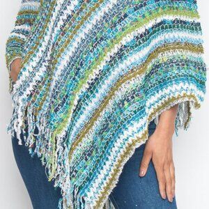 In stock! BLUE MULTI COLOR PONCHO SWEATER