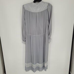 In the Mood womens 8 Vintage gray long sleeve pleated skirt dress chiffon trim