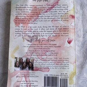 A six-week study book titled 'In the Wait'. Features a watercolor design with pink, yellow, and gray accents.