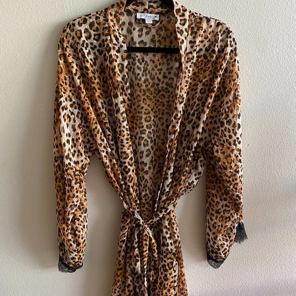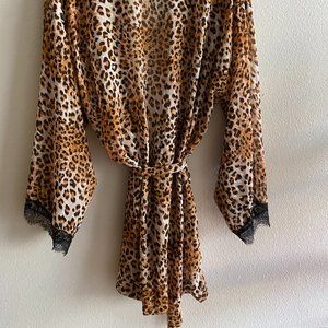 In Bloom's Angela robe flaunts an eye-catching leopard print trimmed with contrasting romantic lace on the cuffs.