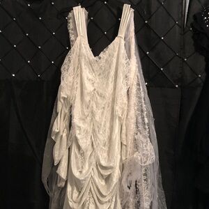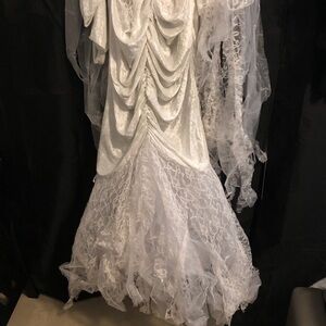 Adult Elegant white Monster Bride costume. Perfect for themed events. Comes with dress bag, dress, wig and neck collar. No jewelry or makeup included. Used as shown.