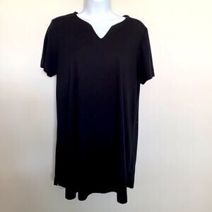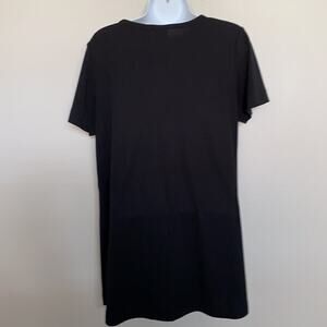 This is a gorgeous dark black medium short sleeve top. It is made by in due time. See measurements in photographs. There’s absolutely no fading in the shirt.