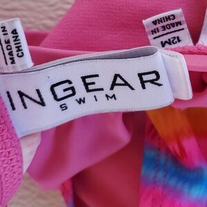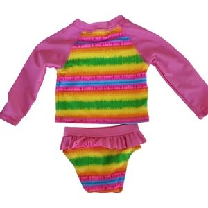 InGear Long Sleeve Rash Guard Tankini Swimsuit Pink Striped Girls 12M