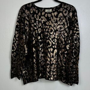 In Italy Metallic Leopard Print Long Sleeve Blouse Top One Size