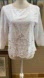This is an InTu sz MD white cotton Lacey front blouse w scalloped back. Is marked MD, it fits more like a Sm/MD. See pics for measurements. It is preowned and only worn a few times. In good condition, sold as is.