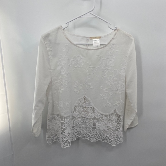 Pretty Lace and cotton blouse with an open back. 100% cotton Bust 19” Length 22” from shoulder. Gently worn