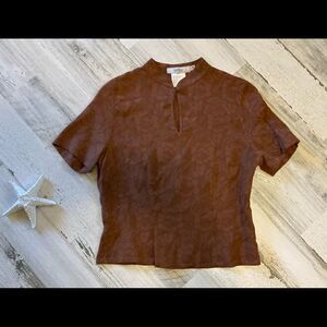 InWear Brown Textured Short Sleeve Top XS