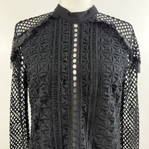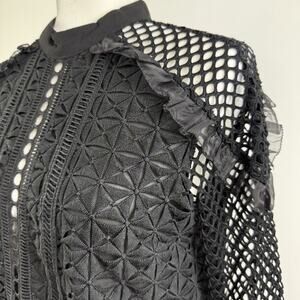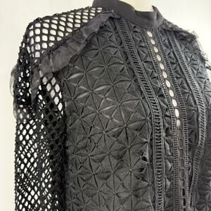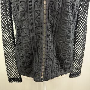 Ina Black Eyelet Lace Fishnet Top Medium Sheer Whimsigoth Goth Dark Romantic