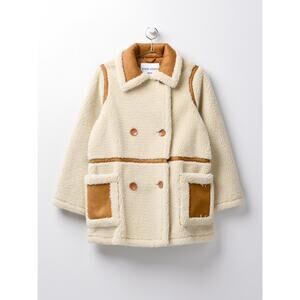 Ina Faux Shearling Suede Double Breasted Coat Jacket Cream Ivory Brown Pockets L