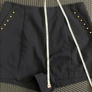 Ina size small shorts. Navy blue with gold flat top studs lining the pockets. Zip up back. High waisted style. Polyester, rayon, and spandex blend. Has a few loose threads at the seams but overall still great condition.
