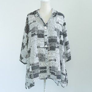 Inae Collection Womens Black Polka Dot Lagenlook Button Front Tunic Size Small