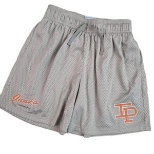 Inaka Power Mesh Shorts Lifting Gym Athletic Pockets Gray Peach Patch Small