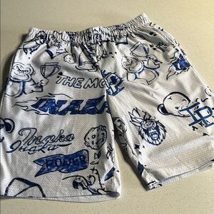 Inaka Power White Graphic Mesh Shorts with Navy Design Mens L