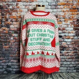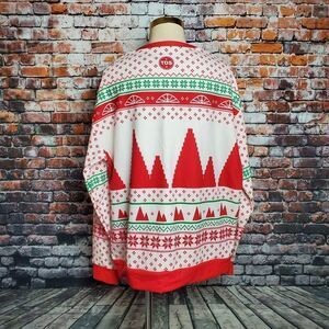 Not a sweater but rather a soft top with a fleece like lining (not thick). Fit is more boxy as you can see from measurements.  Shoulders and pit to pit are the same. Excellent condition Size large