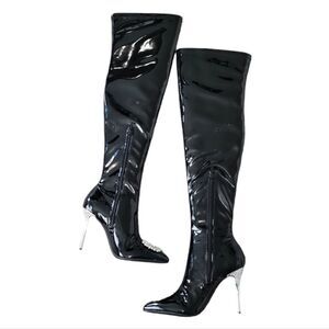 INC Women Black Over The Knee Patient Leather With Sparkling Toe Piece Size 6M NWT. Zipper Closure is in excellent condition.