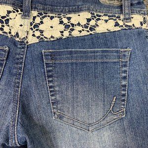 Inc Denim Regular Fit Shorts Women Size 0 Raw Hem Distressed Crochet Lace Detail