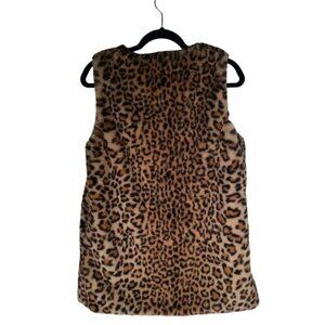 Inc Faux Fur Long Vest Women's Animal Print Leopard Tan Black