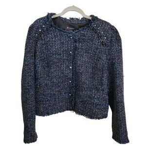 Inc International Concept Blue Tweed Fringe Silver Stud Detail Jacket Size XL