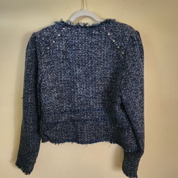 Inc International Concept Blue Tweed Fringe Silver Stud Detail Jacket Size XL