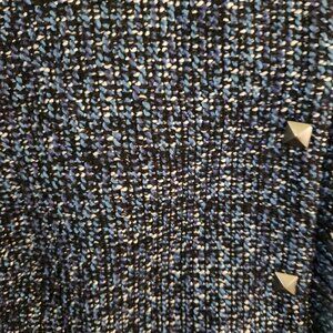 Inc International Concept Blue Tweed Fringe Silver Stud Detail Jacket, Size XL. Pit to pit 23", shoulder to hem 22", Hidden Snap Closure, Fringe Hems, Pockets, Fully Lined, Unique Square Stud Details. Good Pre-Owned Condition