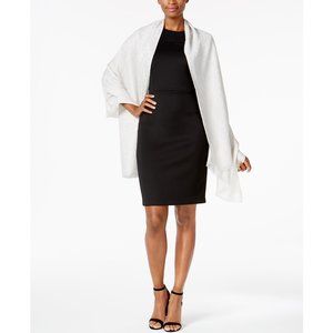 Swirling metallic jacquard lends a luxe and beautiful sheen to a drapable INC International Concepts wrap edged in soft fringe.