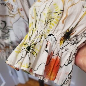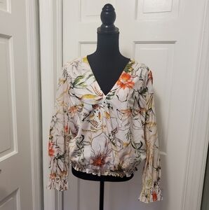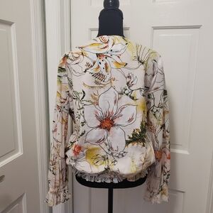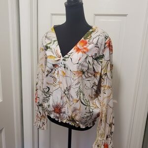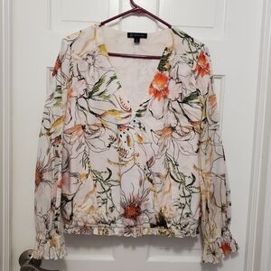 Inc. International Floral Print 100% Cotton L/S Top Size Large, Ruffle Hemline