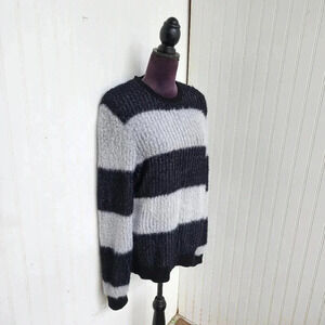 Inc International Concepts Fuzzy Sweater Black Gray Knit Top Soft Women's Sz M