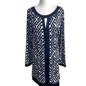 Inc. International Concepts Geometric Print Sheath Dress Navy Blue White Size MP