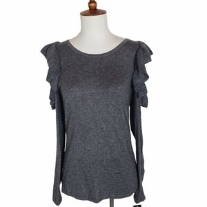 Inc International Concepts Grey Cotton Ruffle Long Sleeve Sweater Small NWT
