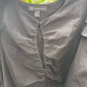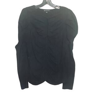 Inc International Concepts Jersy Black Poofy Sleeve Rouched Blouse XL