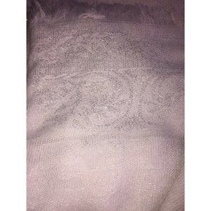 A glistening scroll motif highlights the frayed edges of an INC International Concepts wrap designed for day or evening.