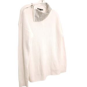 Inc International Concepts SHIMMER Sweater L WHITE Shiny Silver COLLAR $100 New