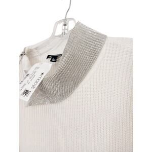 Inc International Concepts Sweater Size Large WHITE with SHIMMER Shiny Silver COLLAR New with Tags Cocktail Party Holiday Fancy Avante Garde Contemporary