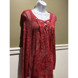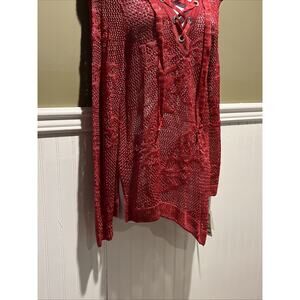 Inc International Concepts Top Womens M Red Mesh Asymmetrical Crochet Cover Up