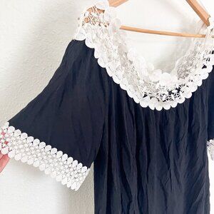 tags: spring summer date night dressy girly feminine off the shoulder cold shoulder crochet unique black&white Nordstrom