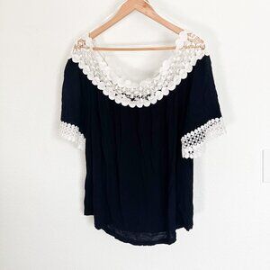 Inc International Concepts Women Black White Off-Shoulder Blouse Top Size XXL