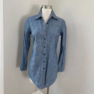 Inc International Concepts Womens 4 Long Sleeve Button Up Chambray Shirt Pockets