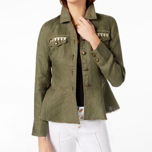 Inc International Concepts Women's Linen Embroidered Peplum Jacket 100% Linen