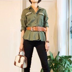 Excellent Preowned Condition Inc International Concepts Women's Linen Embroidered Peplum Jacket/ Size Medium/ Color Green