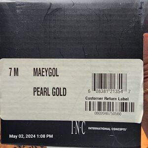 Elevate your look with these stunning INC International Concepts Women's Mabae Bow Flat Sandals. Perfect for weddings, parties, and formal occasions, these medium-width sandals feature a solid pattern with a beautiful gold color and accented with a bow. The flat heel style ensures comfort while walking, making them ideal for any event. Crafted with high-quality materials, these women's flat sandals have a customized design with the model name I.N.C. Maeygol. They are available in a size 7M, making them suitable for most women. Get ready to dazzle in these elegant and stylish sandals that will complete any outfit.