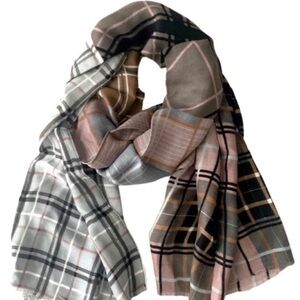 This scarf is so nice and big with a great color combination of grays, black, pinks and tan. It’s so pretty and would go with so many different outfits. It’s also very soft.