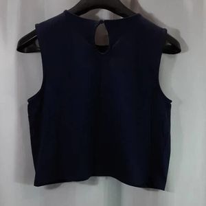 Inc International Concepts size large cropped faux wrap blue top