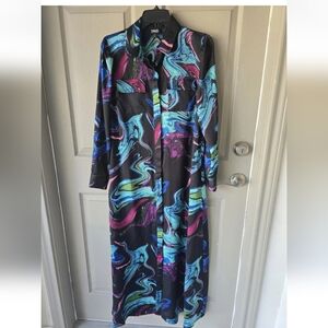 Inc International Satin Shirt Dress XS Women Button Up Pockets Colorful No Belt