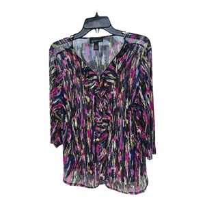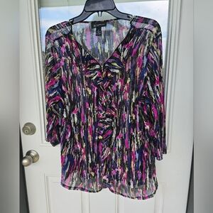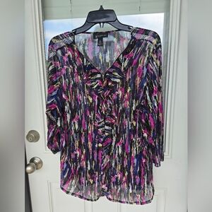 Inc International Sheer Blouse 1X Plus Womens Rainbow 3/4 Sleeve Ruffles Y2K