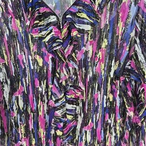The Inc International Concepts Sheer Blouse in size 1X Plus is a stylish and vibrant option for women looking for a colorful and trendy top. With its rainbow ruffles and 3/4 sleeves, this blouse offers a fun and flirty look that is perfect for various occasions. The sheer fabric adds a touch of elegance and sophistication, making it a versatile piece that can be dressed up or down. Perfect for adding a pop of color to any outfit, this blouse is a must-have for women who love to make a fashion statement.