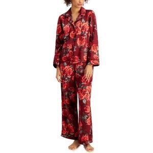 INC International concepts, intimates, red floral, satin, two piece pajama set.